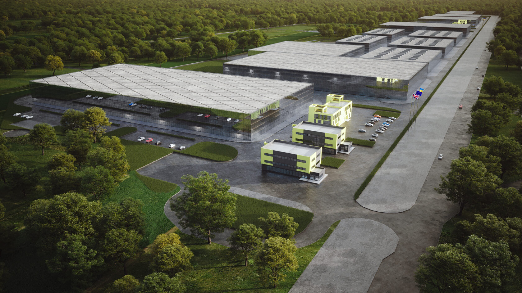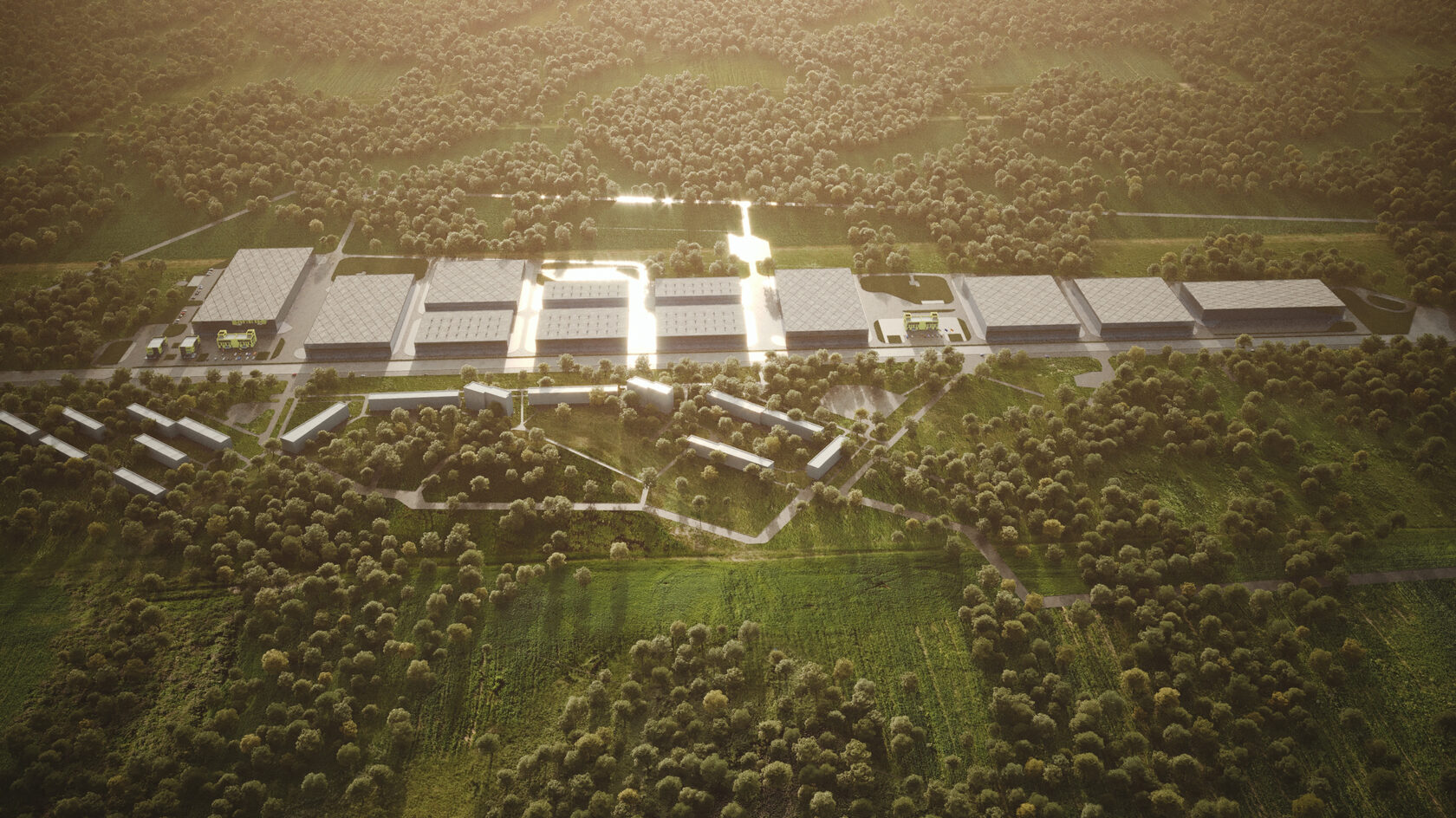 Warehouse buildings will be located on the front sides of the park, with separate logistics, and a parking for trucks. It is also planned to include a customs terminal in the warehouse area. Office and household buildings will be located closest to the main entrance to the Industrial Park.